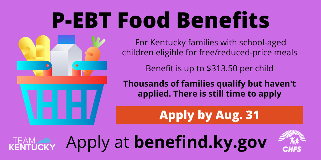 Kentucky Department For Community Based Services Reminder To Families With School Aged Children The Deadline To Sign Up For Pandemic Electronic Benefits Transfer Assistance Has Been Extended To Aug 31 Some Families